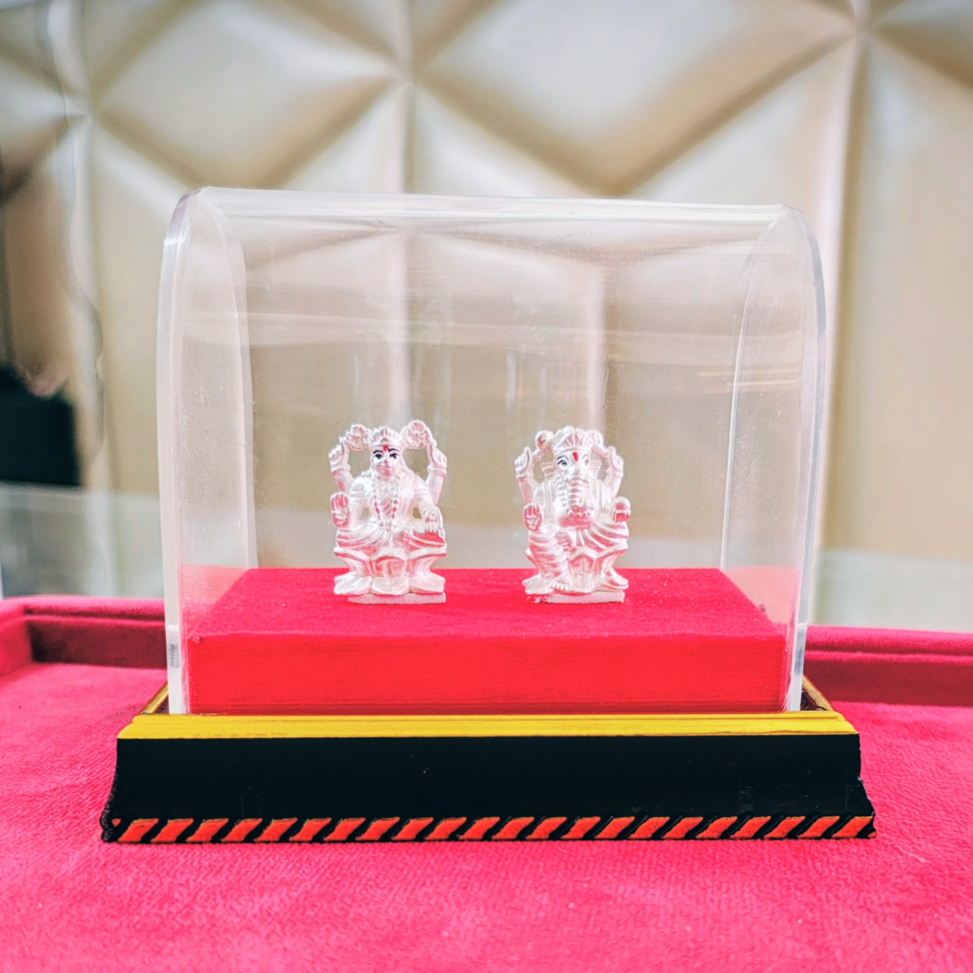 Bring home blessings of prosperity and wisdom with this hollow pure silver Lakshmi Ganesh idol, beautifully crafted and encased in an elegant frame. Perfect for your mandir, home décor, gifting, or festive occasions, this sacred piece radiates positivity and grace.